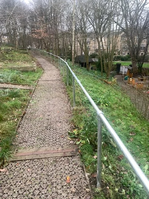 Running the full length of our “Clematis Path” , that provides a natural viewpoint on the upper slope of the Rehoboth. The handrail complements a fully accessible wheel chair compliant path and completes the year long programme of installing seven sets of handrails to enable full access for visitors and volunteers.