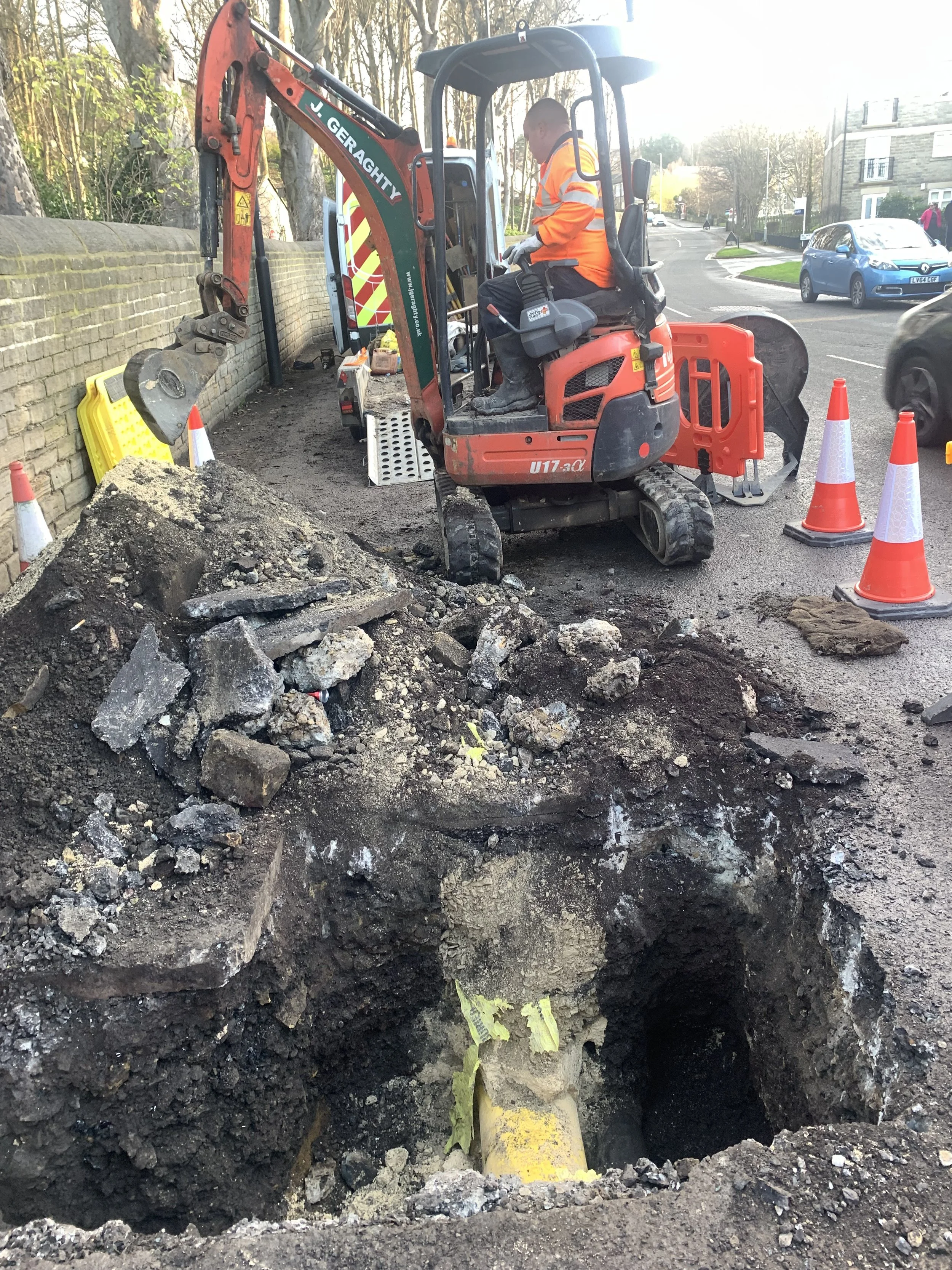 Fortunately, the extremely helpful team from Avove excavated further into Coal Hill Lane and located the water mains, below the gas pipe and further out than expected. However it is all over bar the shouting, there is 30 minutes drilling tomorrow morning, with no requirement for ourselves to be there, followed over the following one or two days by backfilling and tarmac replacement on the main road.